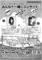 演奏家として、そして指導者として忙しい日々を過ごされているお二人による、小さいお子様からクラシック好きの大人の方まで、みんなで楽しめるミニコンサートです!(演奏時間は45分程度を予定)
